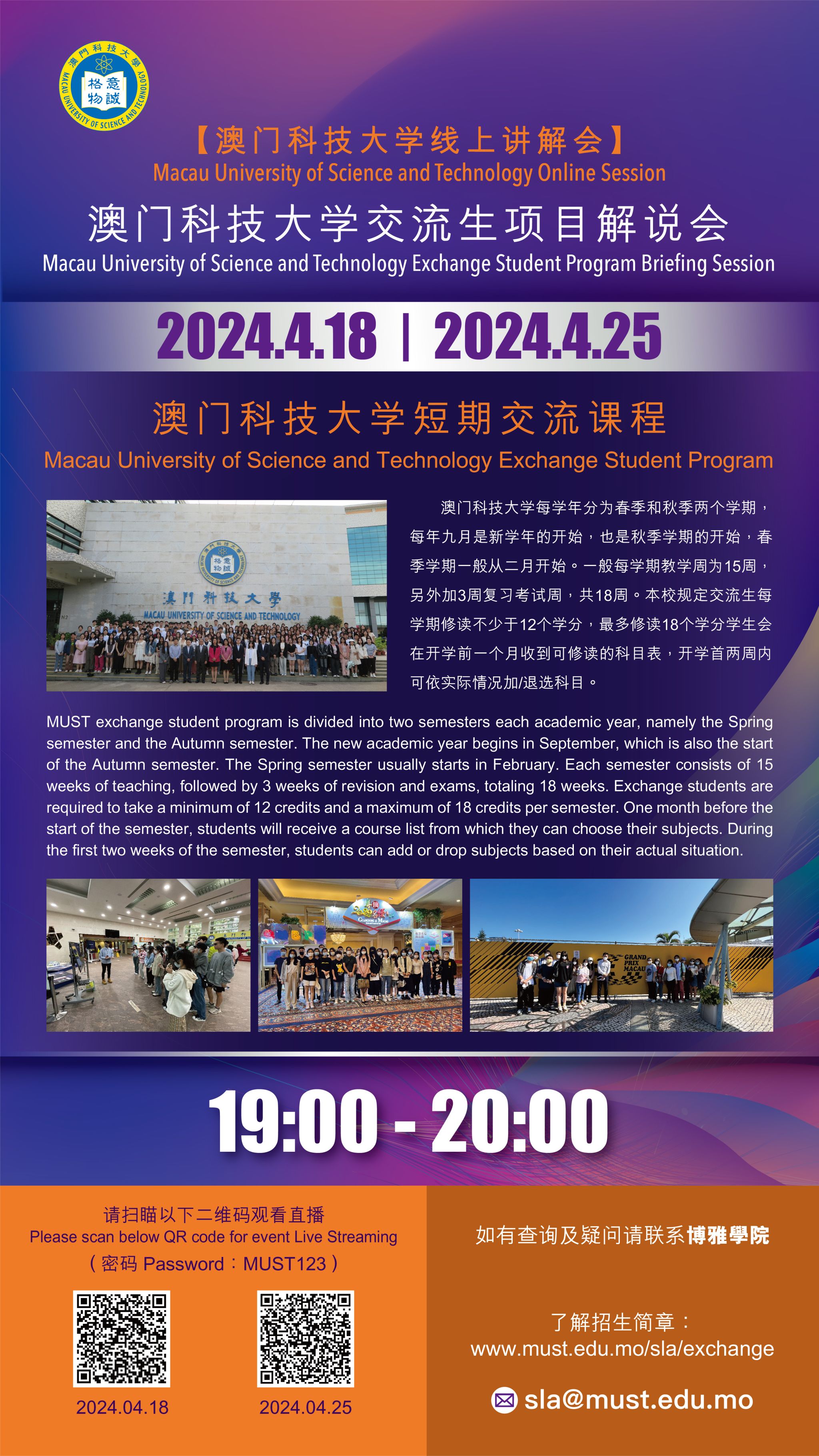 澳门科技大学为方便师生了解“澳门科技大学交流生项目”,将为学校师生举行“公开线上讲解会”,欢迎各位老师和感兴趣的同学参加。
