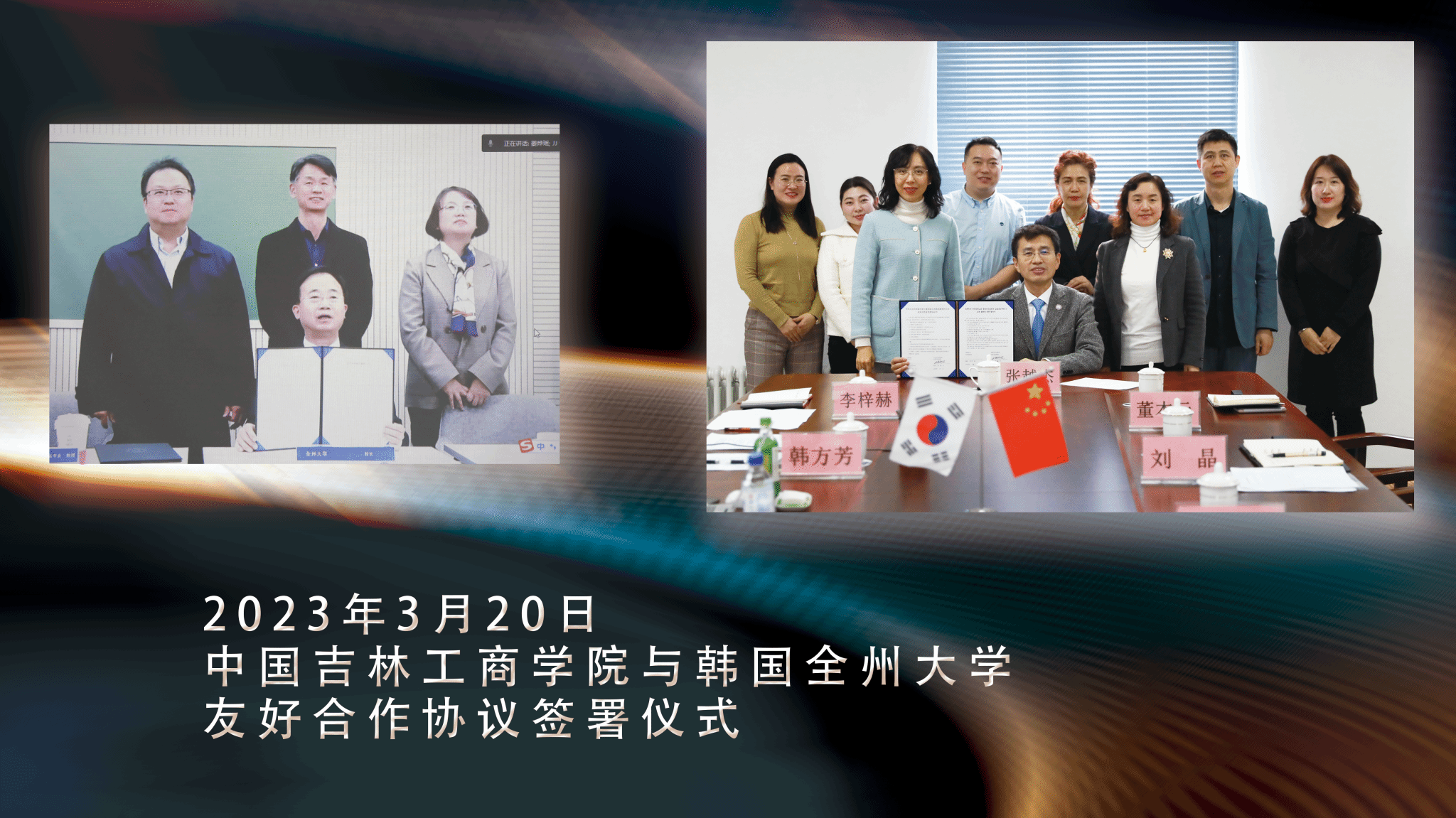 3月20日,我校与韩国全州大学视频会议暨友好合作协议签署仪式在综合办公楼701会议室举行。校长张越杰、副校长董本云,全州大学校长朴珍培、Bio技能型食品专业教授李正常、国际学院院长诸慧琴出席签约仪式。